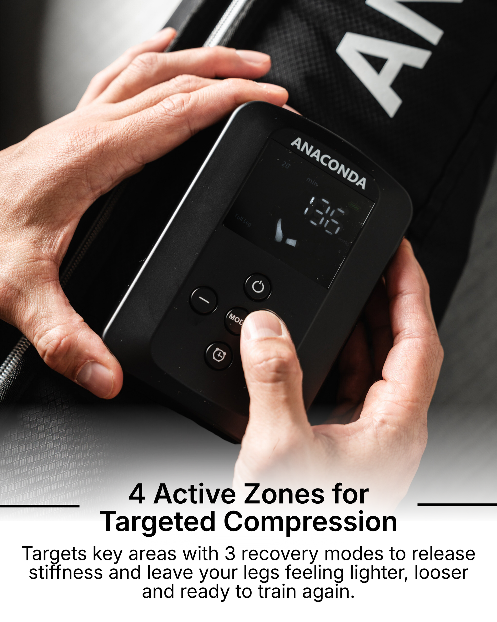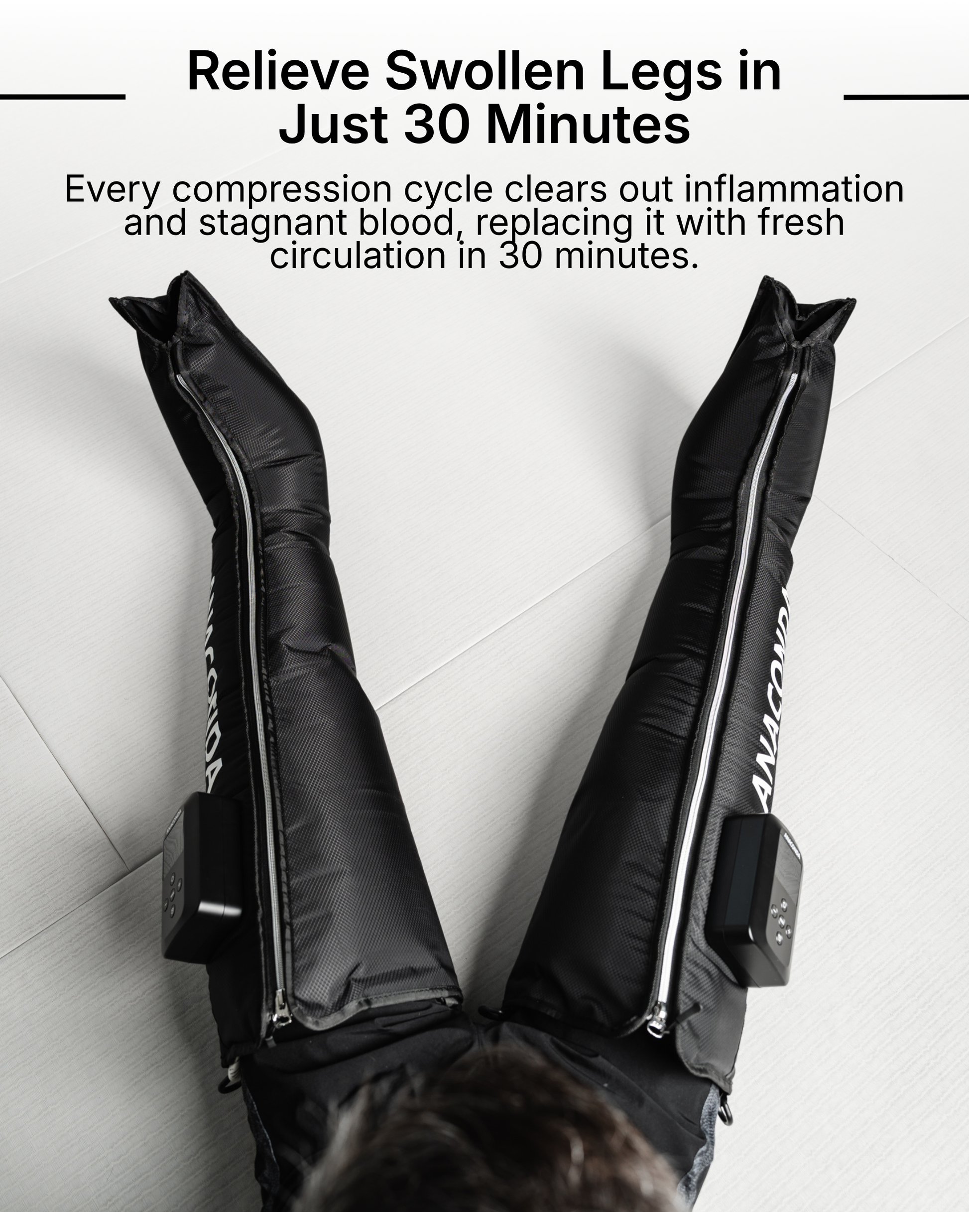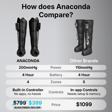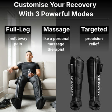 That's why Anaconda is the easiest and most effortless way to get rid of leg pain and recover - with a powerful 4 hour battery at 200mmgh compression power.